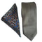 Olive Plain Twill Tie and Floral Pocket Square Set
