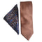 Tan Plain Twill Tie and Floral Pocket Square Set